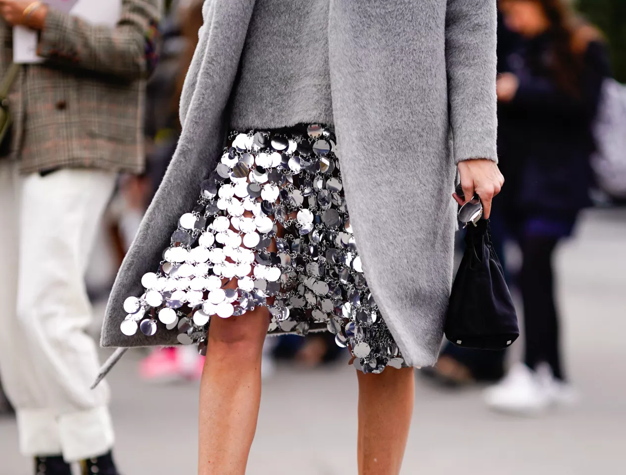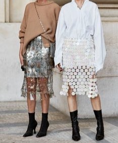 SEQUIN SKIRTS - I recommend wearing only one major Glitter piece to your outfit and let that be the star. The elegant silhouette of a Sequin Skirt can be the one key piece you need this Winter as you have so many ways to wear it. I love the mix of Glitter and the Modern Disco Look combined with unexpected knit tops. Try a Grey Cashmere Sweater set for any day to night event. Or Try a Breton Stripe Knit ala FINN & LUCCA style and some strappy navy sandals and a navy bag for a very French look.