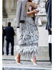 Two Trends in One - Sequin & Feathers. When wearing a funky over-the-top skirt you can up your Jewelry accessories around the face IF you keep your top simple. This is a great trick for any Sparkle Queen or anyone who just needs a dose of Shine. Try Crystal or Rhinestone accessories for a great compliment to Glitter. Wearing your Jewelry in a rainbow of Color can be a fun and a playful way to add more Glitter. What makes these outfits my pick are the versatility of going from Work to Dinner or Party. You can't go wrong with a mix like this.